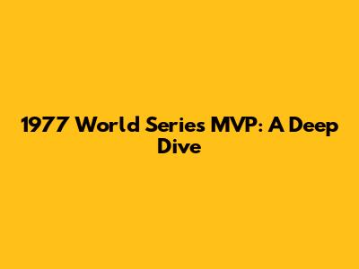 Let's talk about the 1977 World Series MVP, a title that marked a pivotal moment in baseball history. Guys, understanding who clinched this honor and why is super important for any baseball fan. We're going to break down everything you need to know about this iconic series and the player who shone the brightest. Think of this as your ultimate guide to reliving the glory of that year!