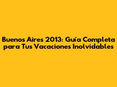 Buenos Aires 2013: Guía Completa Para Tus Vacaciones Inolvidables