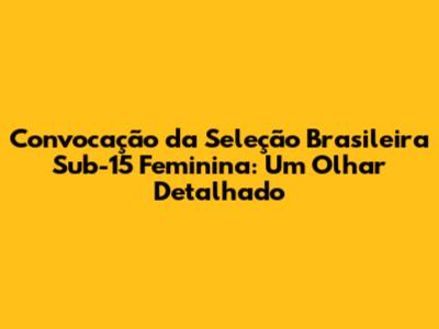 Convocação Da Seleção Brasileira Sub-15 Feminina: Expectativas E Detalhes