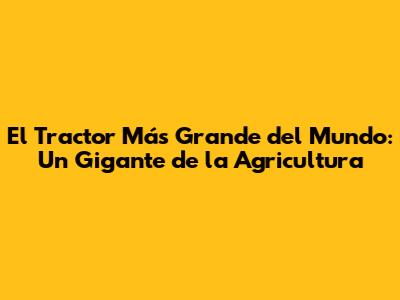 El Tractor Más Grande Del Mundo: Un Gigante De La Agricultura
