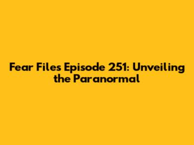 Fear Files Episode 251: Unveiling The Paranormal