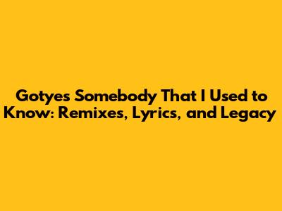 Hey music lovers! Ever get a song stuck in your head that just won't leave? For many of us, that song was Gotye's 'Somebody That I Used to Know'. Released back in 2011, this track featuring Kimbra became an absolute global phenomenon. But it wasn't just the original that captivated audiences; the remixes took the song to a whole new level, breathing fresh life into its already powerful message. Let's dive deep into the world of this iconic tune, exploring its lyrics, the awesome remixes, and why it continues to resonate with us even today. We're going to explore what makes this song so special, from the raw emotion packed into every lyric to the creative genius behind the various remixes that have kept it fresh for years.