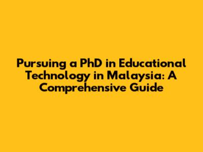 PhD In Educational Technology In Malaysia