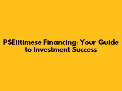 PSEiitimese Financing: Your Guide To Investment Success