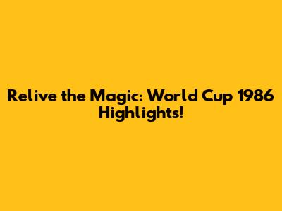 Relive The Magic: World Cup 1986 Highlights!
