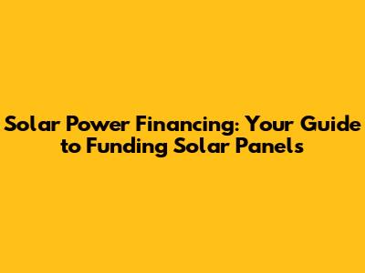 Solar Power Financing: Your Guide To Funding Solar Panels